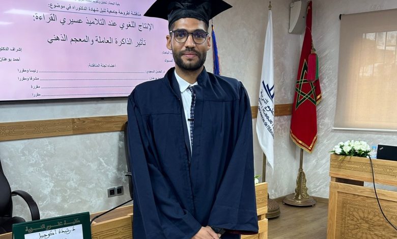 “الإنتاج اللغوي عند التلاميذ عسيري القراءة: تأثير الذاكرة العاملة والمعجم الذهني”، وذلك في إطار سلك الدكتوراه تخصص علوم التربية.