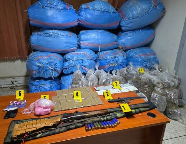 أما العملية الثانية فقد تم تنفيذها بالمنطقة القروية “كنان زمامرة” بضواحي قلعة السراغنة، حيث مكنت من توقيف سيارة نفعية على متنها شخصان يشكل أحدهما موضوع عدة مذكرات بحث على الصعيد الوطني، قبل العثور بحوزتهما على 476 كيلوغراما من مخدر الكيف و 105 كيلوغراما من التبغ المهرب، فضلا عن 700 غراما من الكوكايين وكيلوغرام و700 غراما من مخدر الشيرا، وكذا بندقية صيد غير مرخصة و13 خرطوشة.